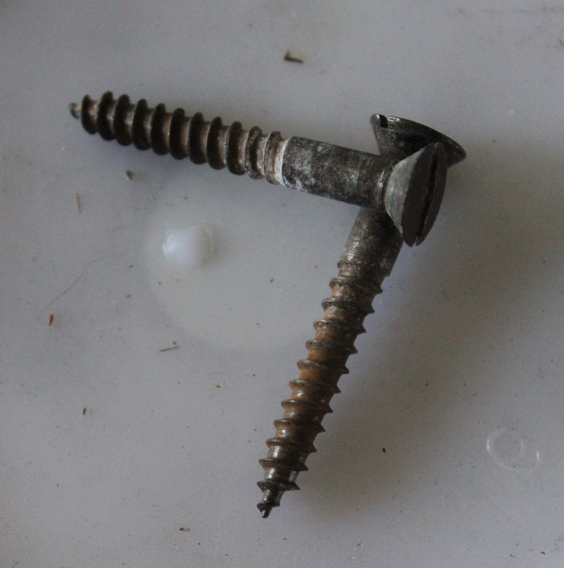 Two antique wood screws wedged the fan bracket into a splintered fragment of lathe. One fell out when the Spouse poked it with a screwdriver. The fan swung back and forth in ponderous arcs, suspended by one last turn of the second ancient screw. Oh, hey. It really was dangerous. Huh.