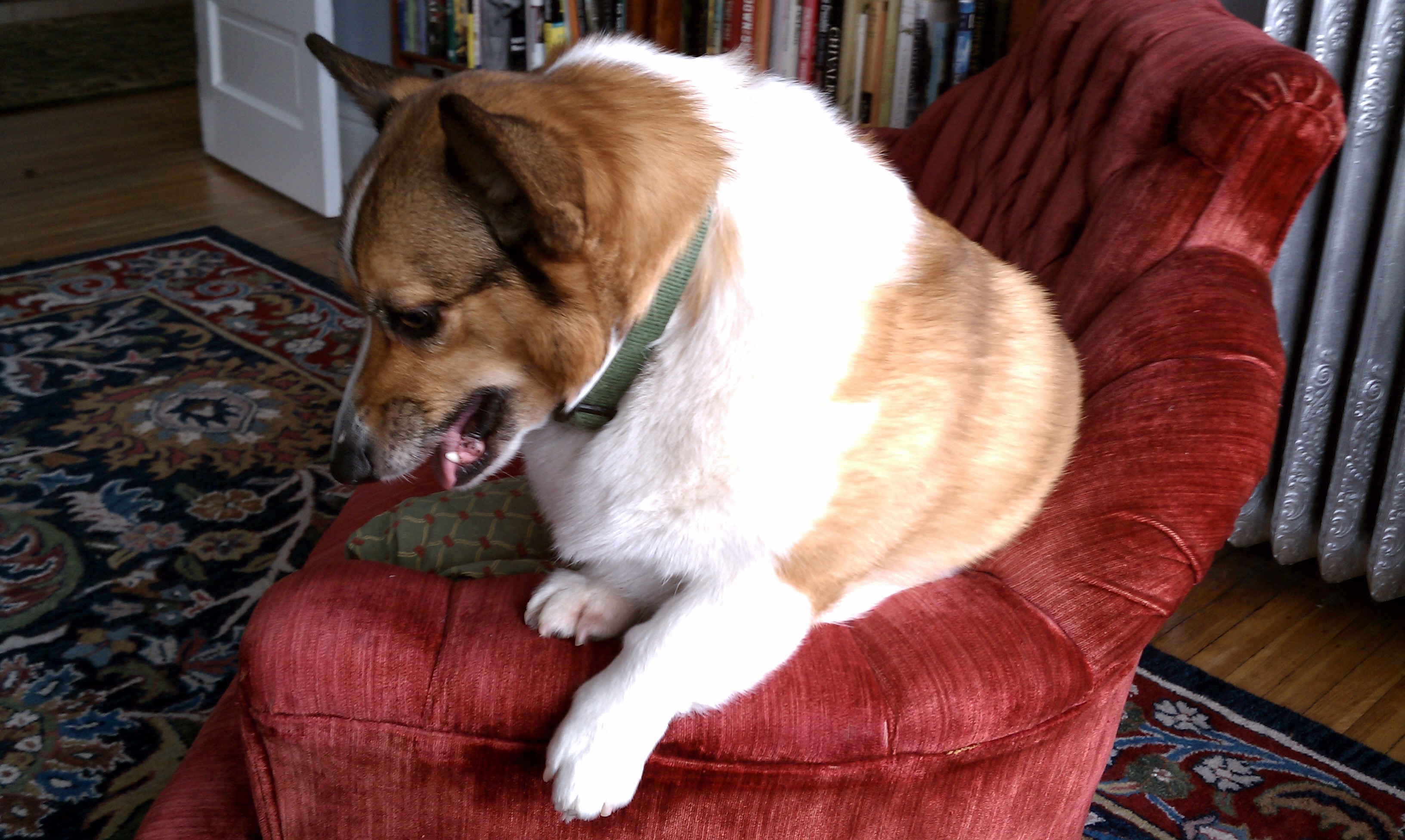 When distributing his opinions, Hamish adopts a particularly annoying body posture. His ears are pricked. His head is high. His back is long and stiff. His stubby tail stands out. His tiny T-rex front legs are planted firmly. His lip curls after he declaims as he prepares to press his position. It should be cute.
