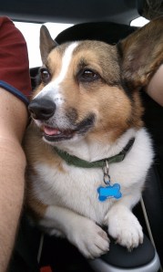 First off…what a great looking dog Hamish is. I mean…damn, that’s a good looking dog. What a great dog. He does love riding on the console. Jumps right up there as soon as he gets in the car. You forgot to mention that if the driver or passenger leaves his/her seat at any stops along the trip, Hamish is quick to takeover the seat and is very reluctant to go back to the console when the human returns. I too love it when he raises his little paws around in the air to counter-balance against a turn. Cute as can be.