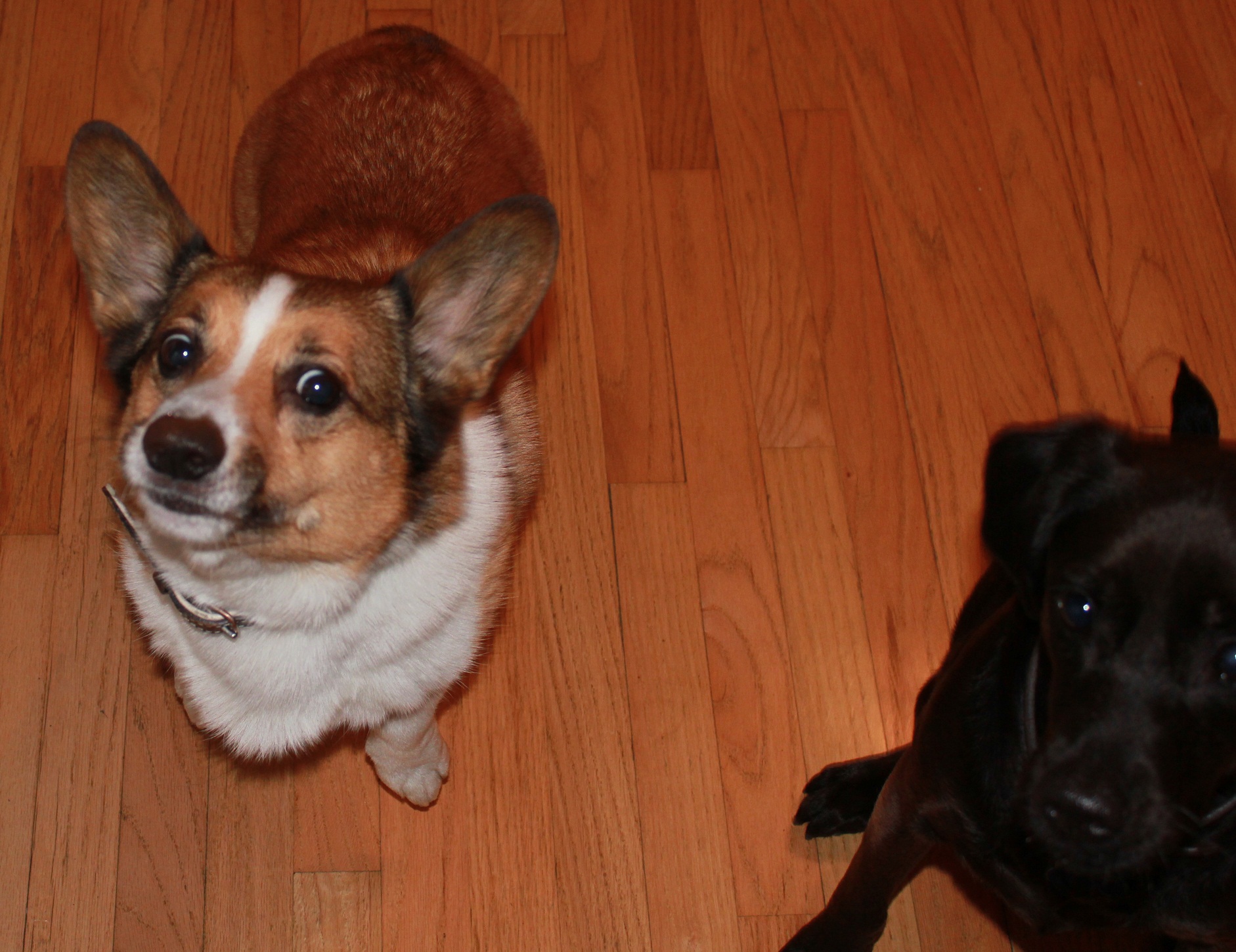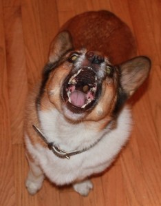 I sighed. Of course Hamish is good all the time and I didn’t want him to be bad. He also tends to portliness. But, peace in the household was important. “Want to have some dog school here in the kitchen?”