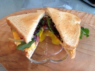 Lol, the whole wideeyedfamily is here!!! Don’t you apologize for enjoying a sandwich while your wife is off working herself into frenzied hunger sir! It looks quite delicious! My wife and I recently put fried eggs on our grilled burgers and they were stupid good!