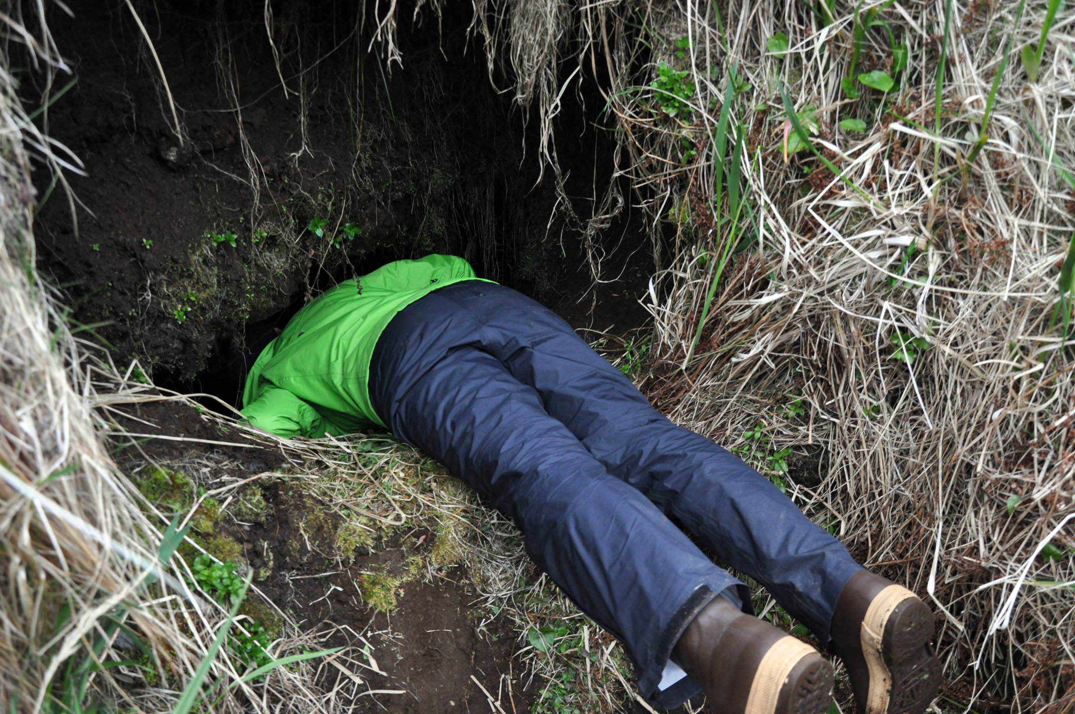 “Ok,” I told the crew, “None of you are going in there. It’s too risky and I’m not getting on the sat phone to tell your families I lost you.” The young men with WWII fever gave me hard eyes. The determined young women gave me hard eyes. The other senior researchers didn’t care. The openings, after all, were very small. There was going to be crawling through mud and soldier yuck undisturbed for more than 60 years. “I’ll go,” I stated. There were mutterings of various kinds, I employed selective deafness protocol.